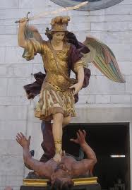 Dopo l'adorabile nome di Gesù, "che fa flettere ogni ginocchio in cielo, sulla terra e negli inferi"; dopo il nome soave e benedetto di Maria, profumo di salvezza da cui esala la grazia divina, dice Sant'Ambrogio, è il nome più degno di rispetto quello del glorioso principe delle celesti falangi ? Michael o Michele significa: Chi è simile a Dio? Quis ut Deus? MICHAEL è un nome di potenza e di vittoria. Come un re nobilita sul campo di battaglia il generale che ha validamente combattuto per la sua causa, così Dio ha voluto che il grido di guerra, il grido di umiltà e di amore del valoroso arcangelo contro Satana, diventi suo titolo di nobiltà. A questo nome di Michael , a questa parola folgorante: Quis ut Deus? L'orgoglioso Lucifero e la sua truppa ribelle caddero, rapidi come il fulmine, nell'abisso scavato dalla vendetta divina. Michael! Chi è come Dio?
